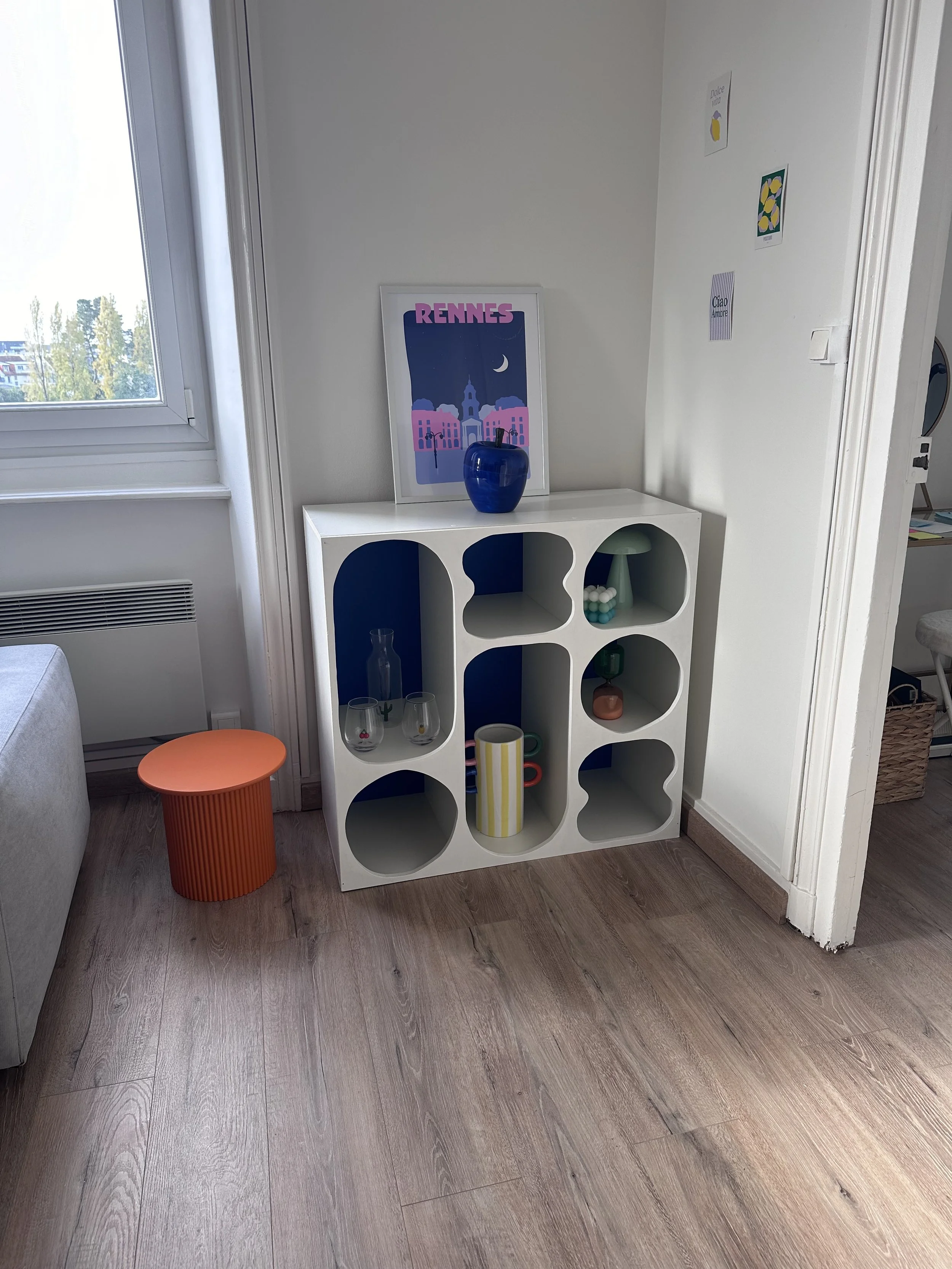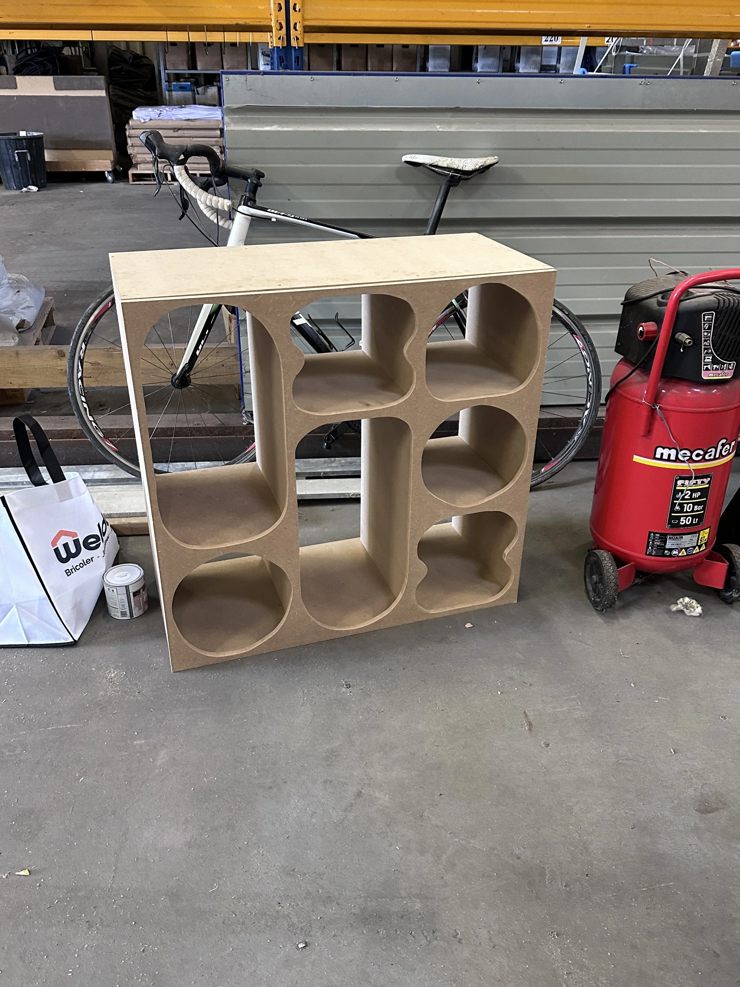 MEUBLE DÉCO ALVÉOLÉ Conception et fabrication d’un meuble avec des formes variés en façade et un fond bleu Klein2024